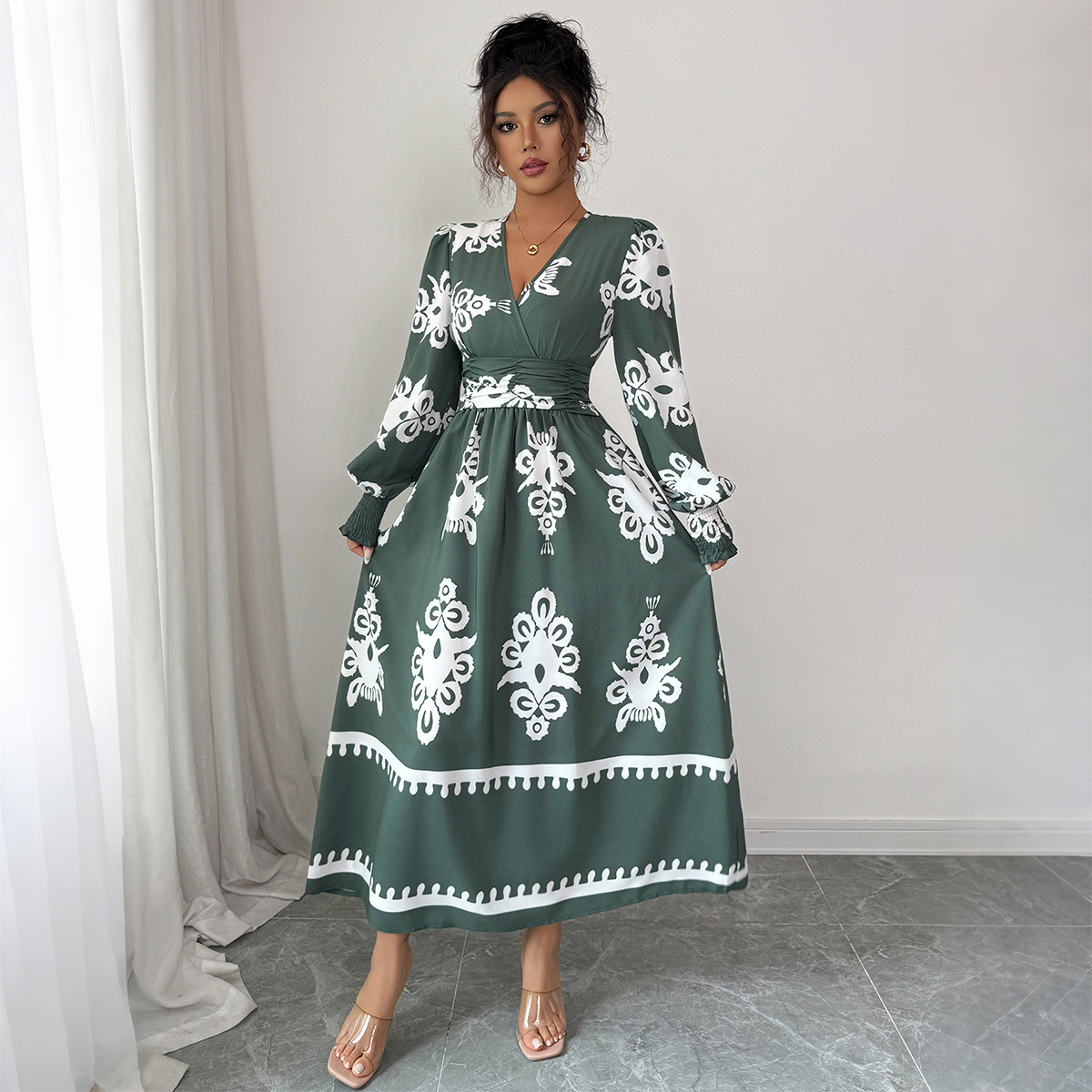Elegant Style Printed Long Sleeve Dress Women’s Clothing
