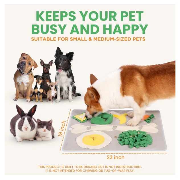 • LIGHT & EASY TO CARRY: Our puppy snuffle mat is lightweight and portable, making it easy to take anywhere, whether at home or on the go. Perfect for travel, it ensures your pet enjoys endless fun. Ideal for last-minute gift shopping. PERFECT FOR MULTIPLE PETS: Suitable for homes with small and medium-sized dogs, cats, and rabbits, this versatile snuffle mat for puppies is ideal for engaging various small pets in a fun, interactive play.